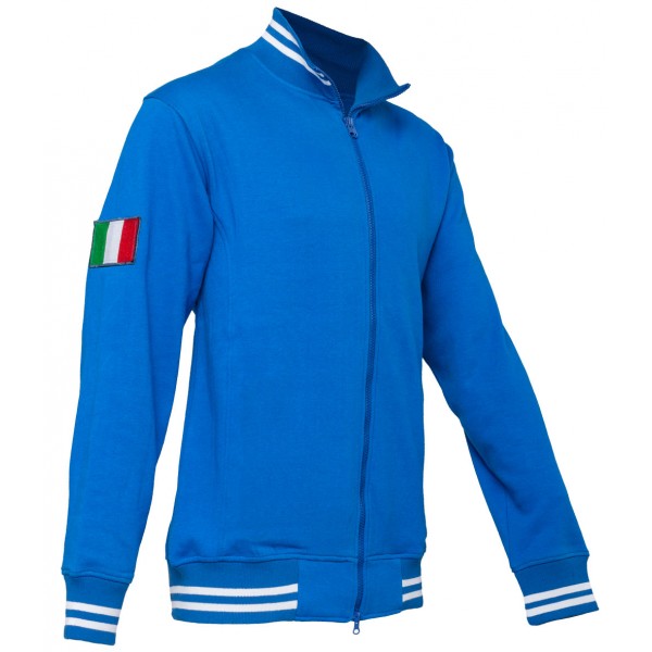 Felpa ISSA Ortles 04840 in 65% cotone e 35% poliestere. - colore royal blu - Felpa con cerniera frontale, patch con bandiera italiana applicata con velcro, sostituibile con patch porta tesserino fornito di serie.