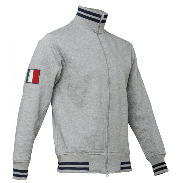 Felpa ISSA Ortles 04840 in 65% cotone e 35% poliestere - Colore Grigio - Felpa con cerniera frontale, patch con bandiera italiana applicata con velcro, sostituibile con patch porta tesserino fornito di serie.