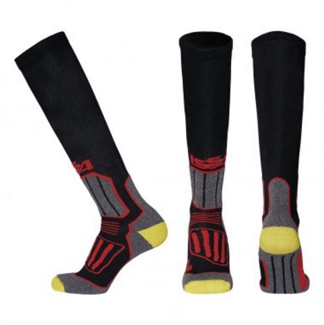 La calza presenta tre importanti caratteristiche: l´Amicor Plus antibatterico che riduce la formazione dei cattivi odori, il Kevlar che rende più resistenti le zone di maggior abrasione (punta e tallone) e la speciale forma anatomica (esiste una calza dx ed una sx).