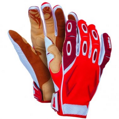 Guanto High Tech di derivazione sportiva, in pelle sintetica Clarino ma arricchito da rinforzi in gomma, inserti in gel assorbente, applicazioni in silicone antiscivolamento.
