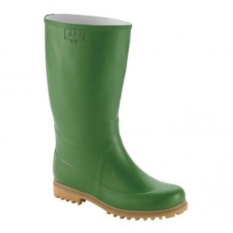 Stivale in gomma naturale verde con suola carrarmato ambra.