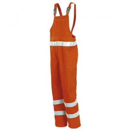 100% cotone. Tasche applicate sul davanti. Apertura laterale chiusa con bottone per facilitare la vestizione ed elastico in vita. Bretelle regolabili con fibbie in plastica.