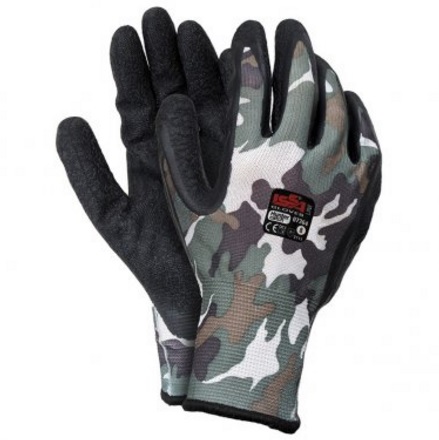 Guanto con maglia mimetica a filo continuo, rivestito in lattice zigrinato che garantisce un’eccellente presa.