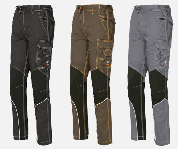 I pantaloni Stretch On in cotone canvas, con sistema di elastico e bottoni in vita, diverse tasche e inserti in tessuto stretch nei punti di maggior movimento offre massima comodità, soprattutto per i lavori più pesanti nei cantieri edilizi.