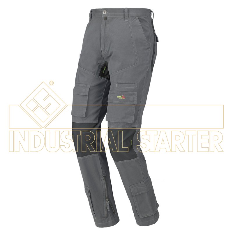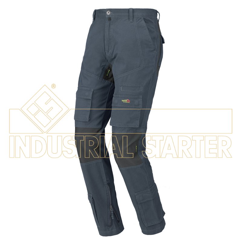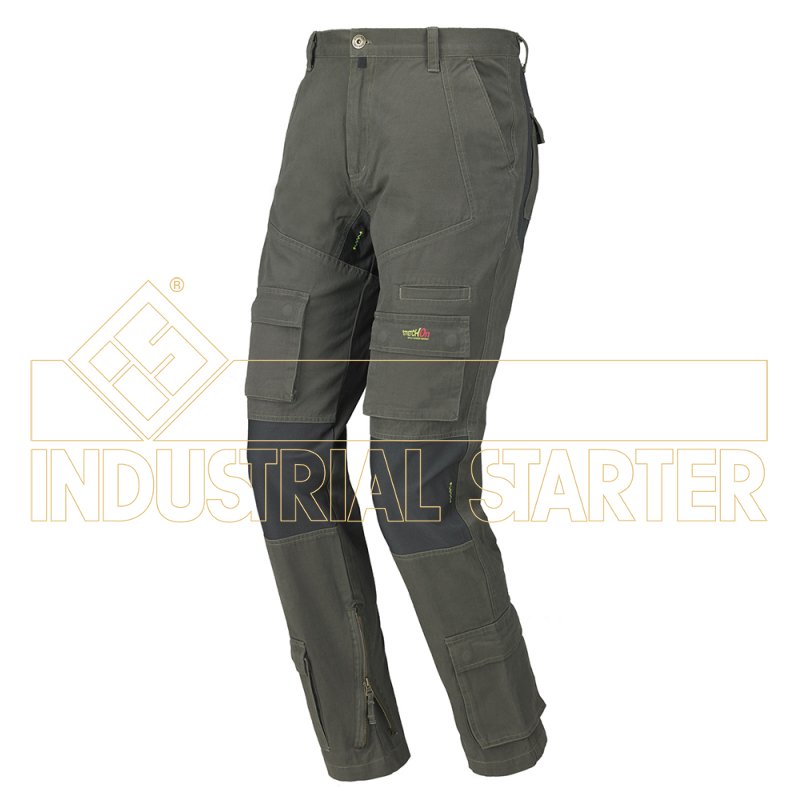 CE rischi minimi Pantalone multitasca 100% cotone canvas con inserti in tessuto stretch nei punti più sollecitati dal movimento, garantendo un elevato comfort all’operatore. Regolazione della vita tramite pratico sistema elastico e bottoni. Il pantalone è fornito in box. Composizione: 100% cotone canvas con inserti in tessuto stretch. Colore: grigio, verde, blu maiolica, tutti con inserti grigio antracite