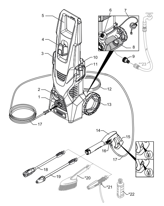 Quick Connect: raccordo rapido 3 Il tubo ad alta pressione è facile da usare, basta inserirlo o estrarlo con un semplice click dalla macchina e dalla pistola. Fa risparmiare tempo ed evita la fatica.