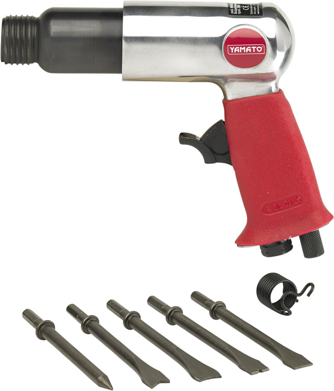 Comprende anche KIT 4 scalpelli, molla, e accessori. Impugnatura antiscivolo a basse vibrazioni. Struttura in alluminio pressofuso. Attacco rapido