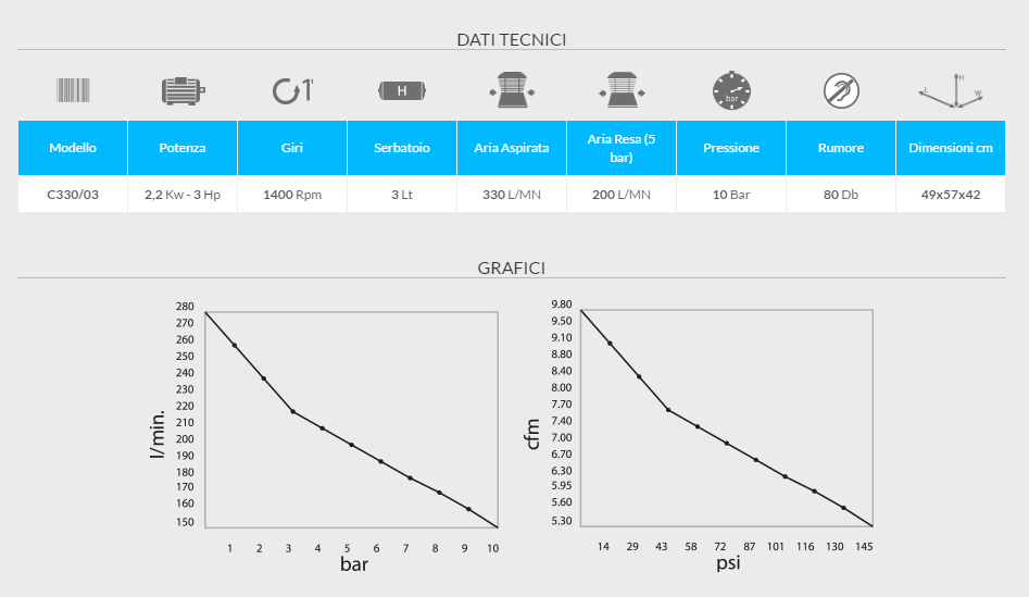 Caratteristiche tecniche Compressore Gentilin C330/03