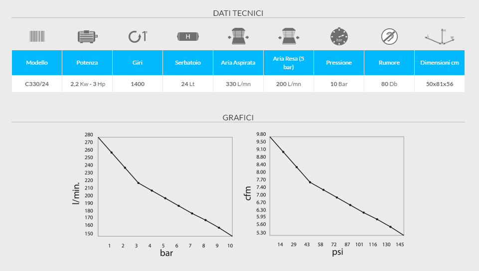 Caratteristiche tecniche Compressore Gentilin C330/24