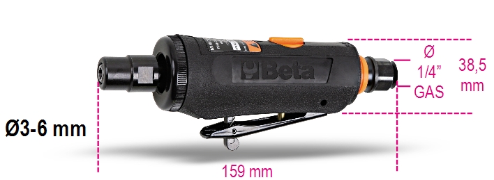 Leggera e maneggevole. Corpo ed impugnatura in materiale antiscivolo. Ottimo bilanciamento grazie a due cuscinetti a sfera. Regolatore di velocità mediante manopola.