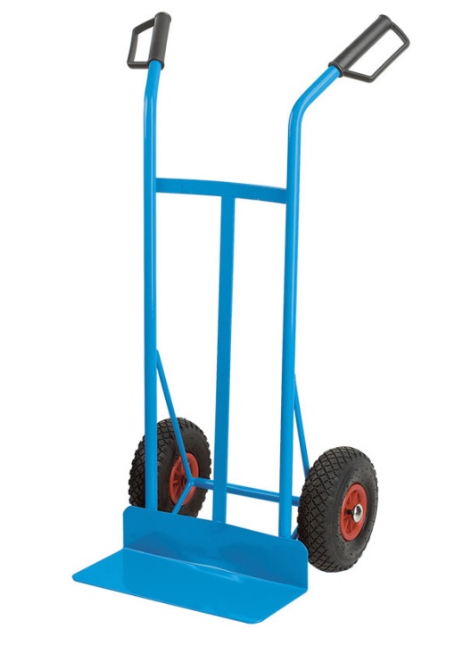 Carrello con ruote pneumatiche in gomma Ø 260 x 85 mm, adatto al trasporto di vasi e scatole con una portata massima di 200KG; dotato di manopole antinfortunistiche. Verniciatura epossidica