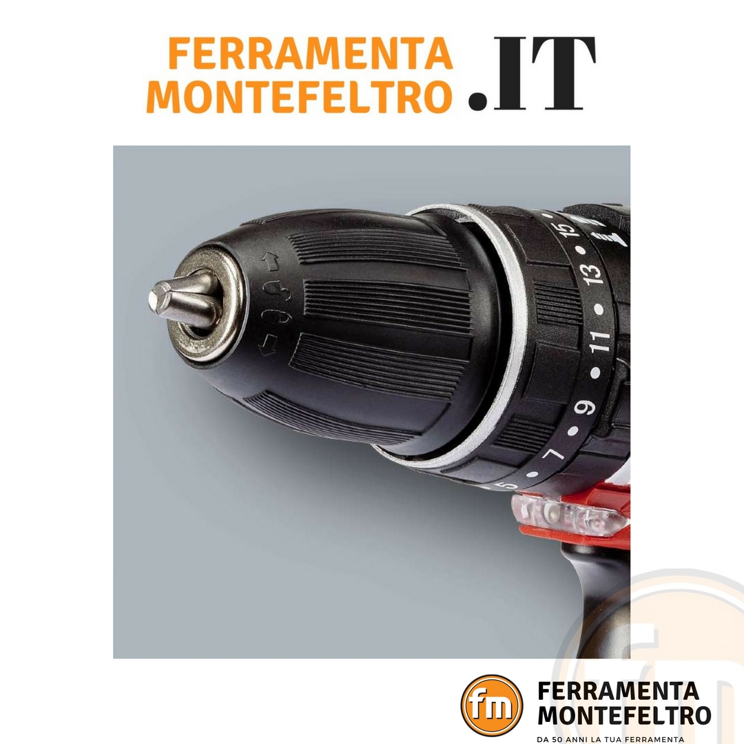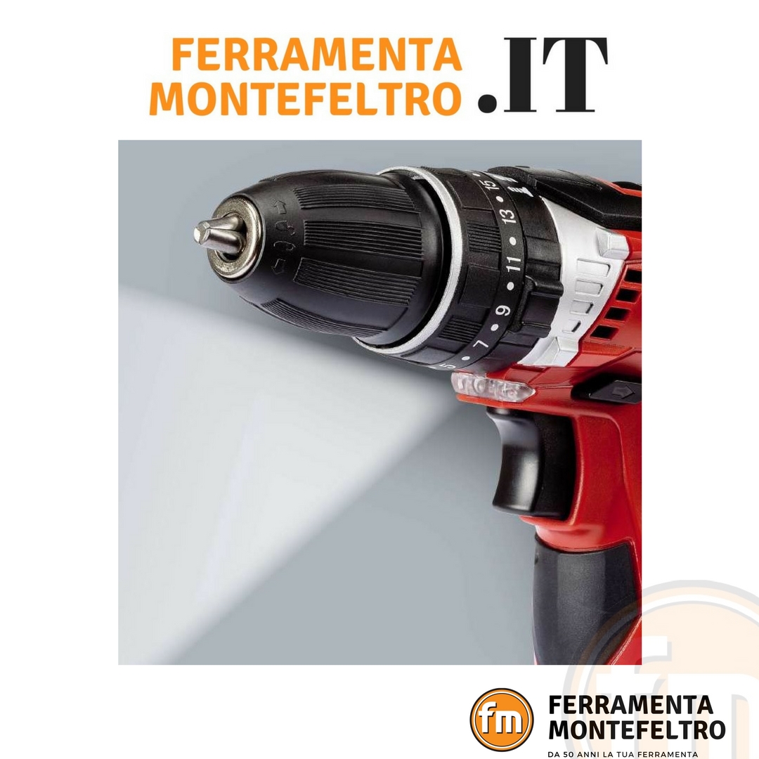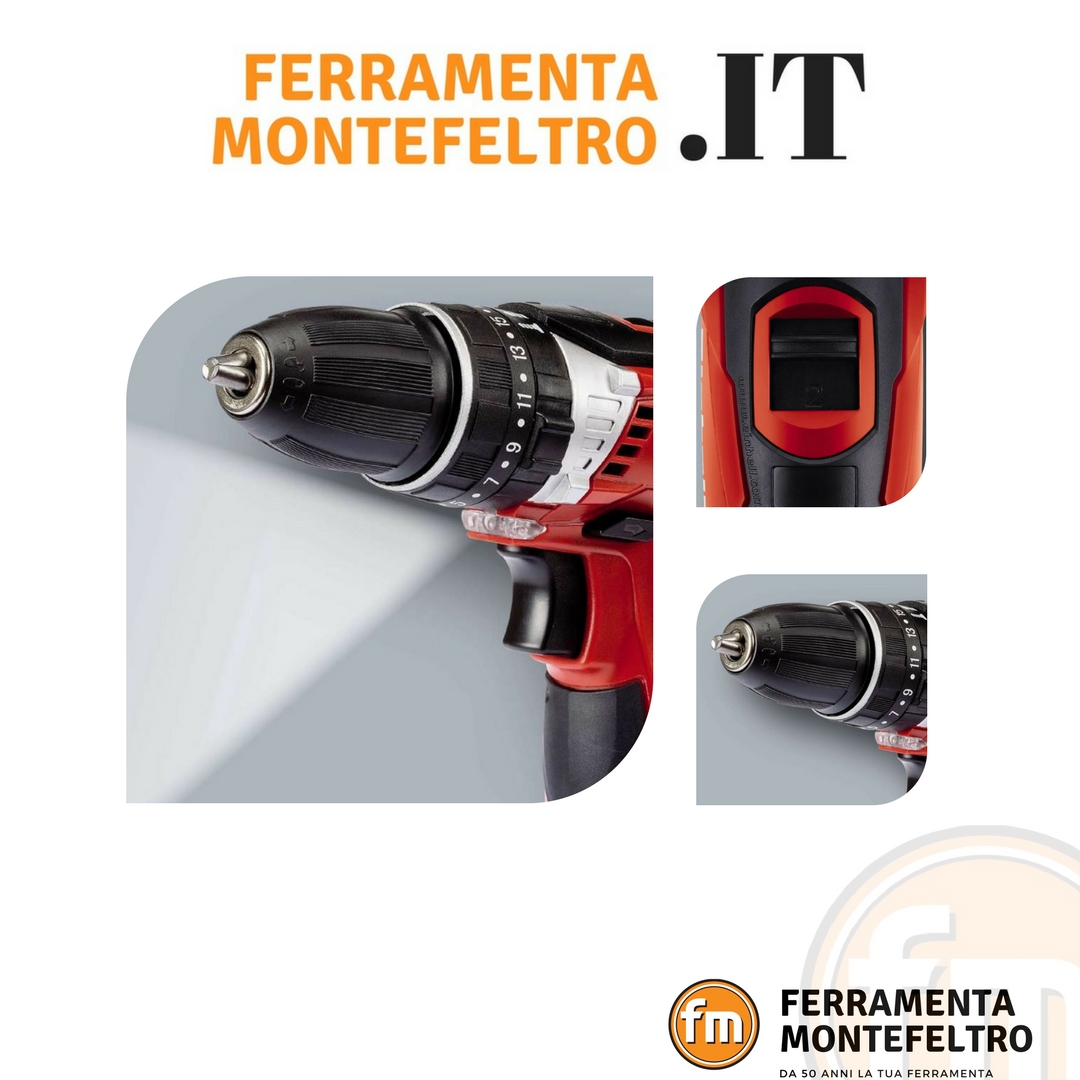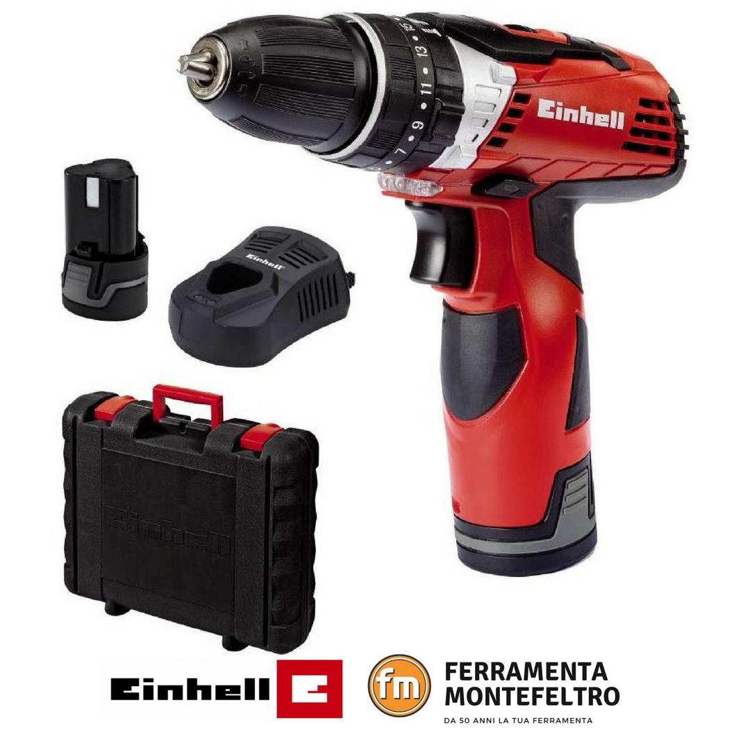 Il trapano avvitatore a percussione a batteria Einhell TE-CD 12 Li-i è un robusto tuttofare con potente trasmissione a due velocità per lavori di foratura e avvitamento. Gli ingranaggi in metallo di alta qualità consentono una trasmissione ottimale della forza e valori di potenza elevati a fronte di un basso attrito. 17 livelli di regolazione della coppia e un livello di foratura e trapanatura a percussione garantiscono possibilità di regolazione precise per lavorare su materiali differenti, quali pietra, calcestruzzo, piastrelle o legno. La struttura snella ed ergonomica del trapano a percussione a batteria assicura il comfort necessario anche in caso di lavori prolungati e impegnativi. Insieme al blocco automatico del mandrino e alla funzione Quick-Stop, il mandrino autoserrante a manicotto singolo da 10 mm consente un cambio utensile rapido e facile. Il trapano a percussione è dotato di luce LED integrata per illuminare in maniera ottimale le zone di lavoro poco illuminate. In questo modo l’utente non perde mai di vista il proprio lavoro per esempio in costruzioni grezze o in zone male illuminate. La dotazione comprende due batterie agli ioni di litio da 2,0 Ah.