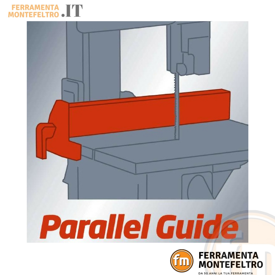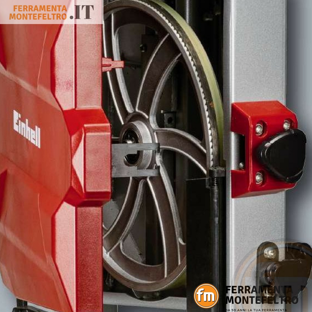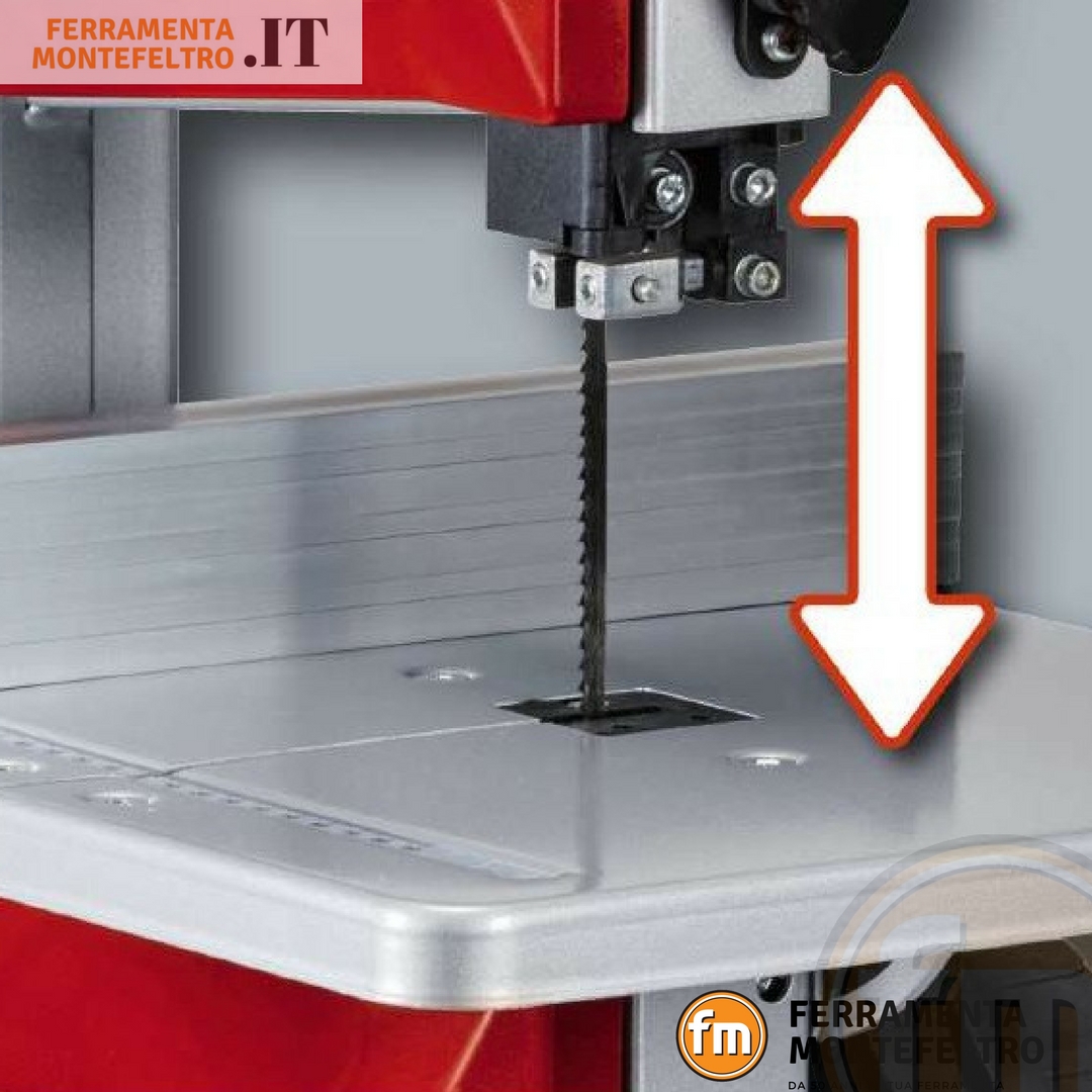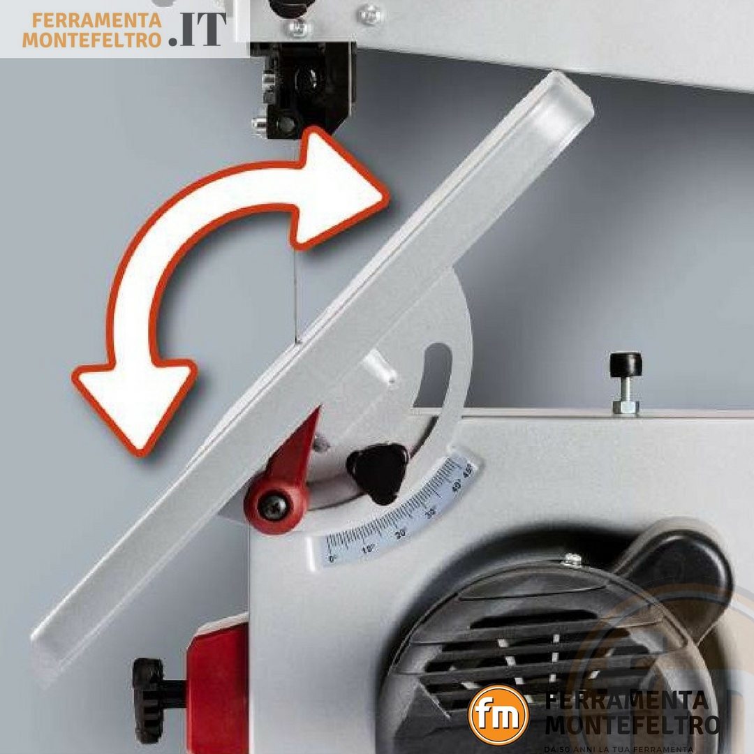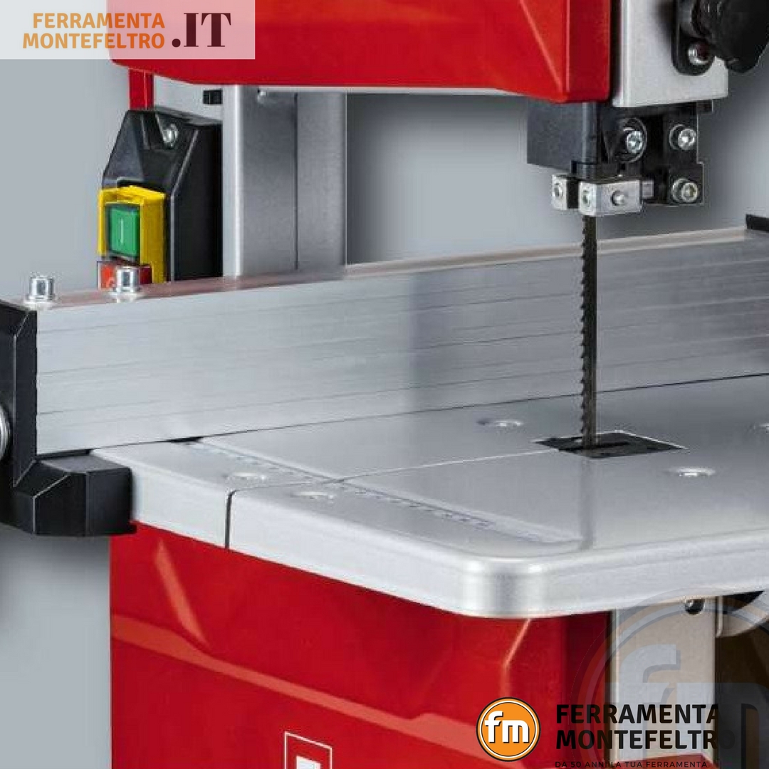 La protezione della lama è inoltre regolabile in altezza e quindi adattabile allo spessore del materiale da tagliare. Lo spintore compreso nella dotazione è indispensabile per lavorare in sicurezza con la sega a nastro.