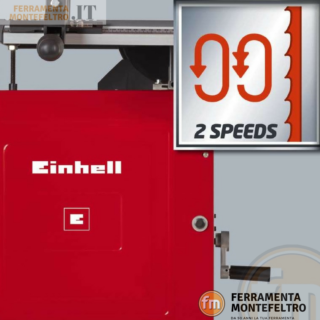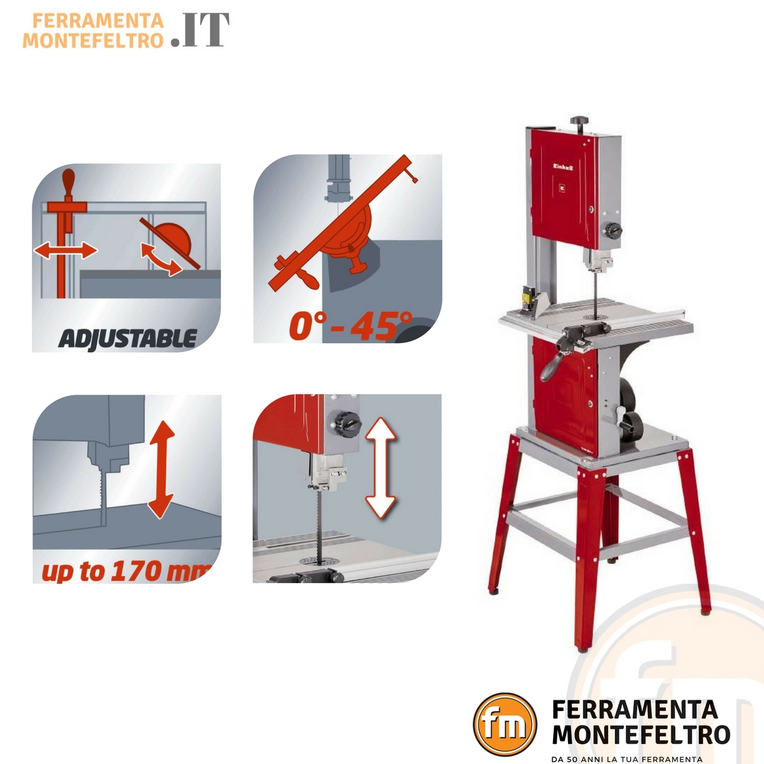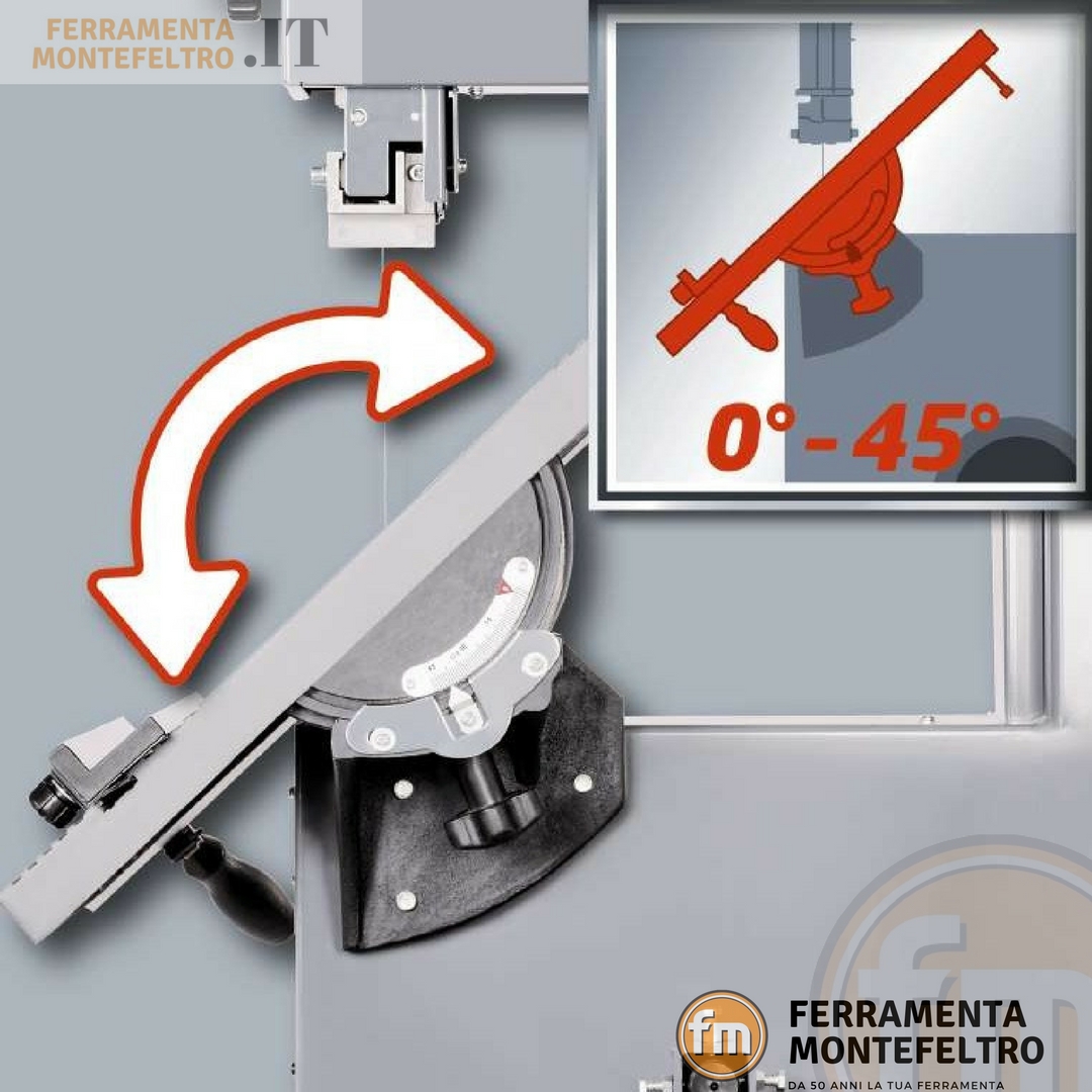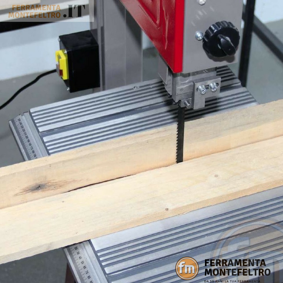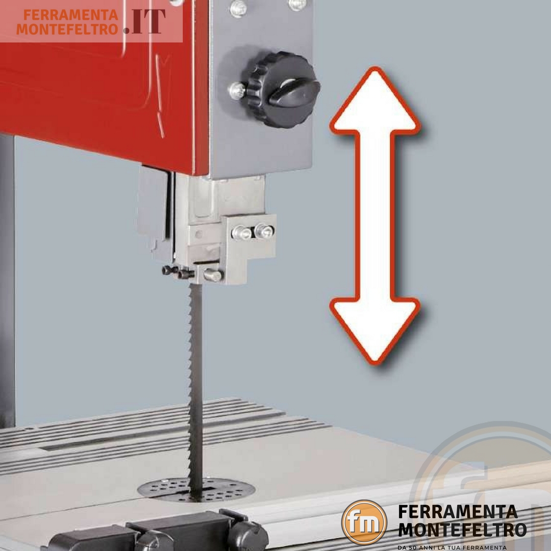 La sega è dotata di una regolazione del movimento del nastro e una guida del nastro regolabile in altezza con protezione della lama.