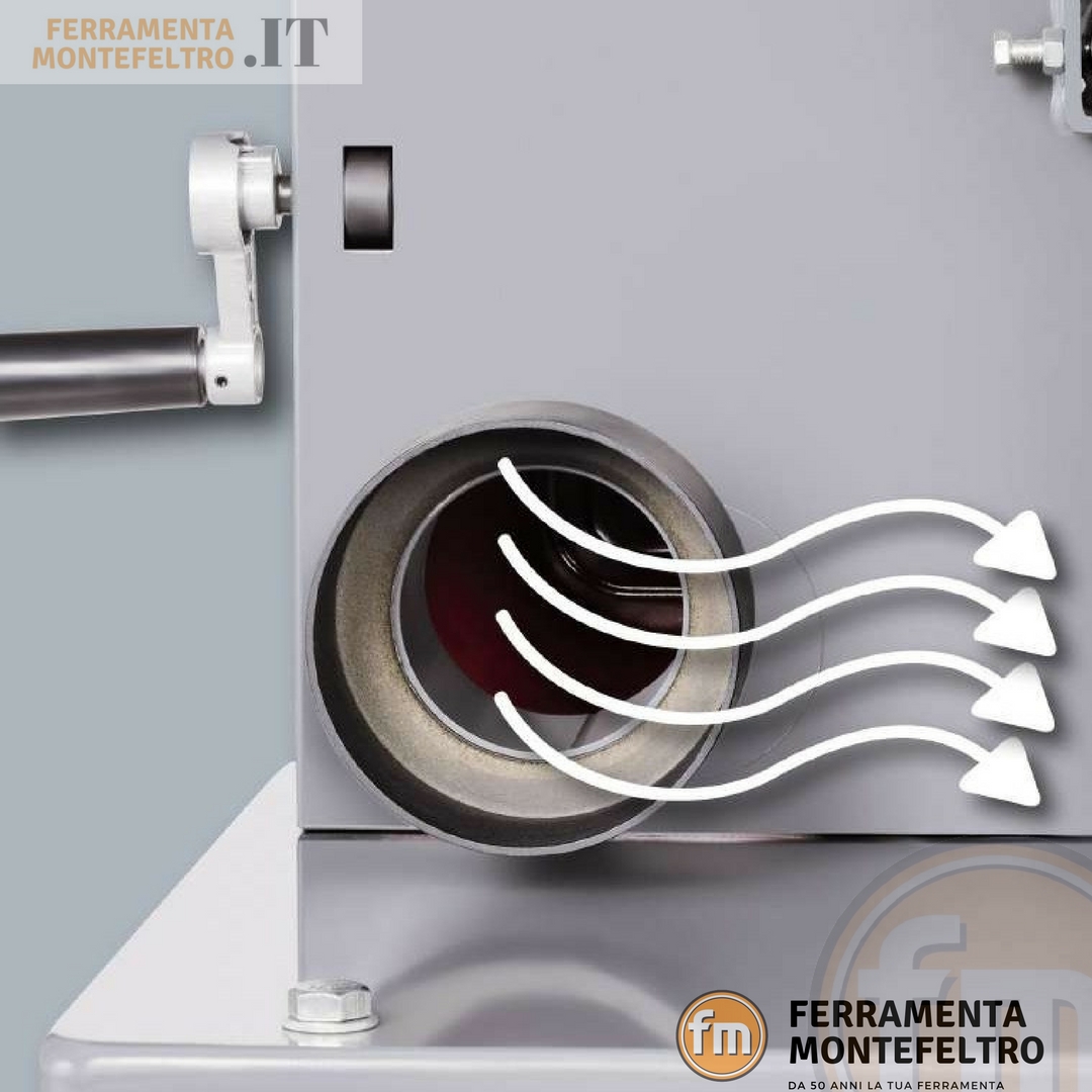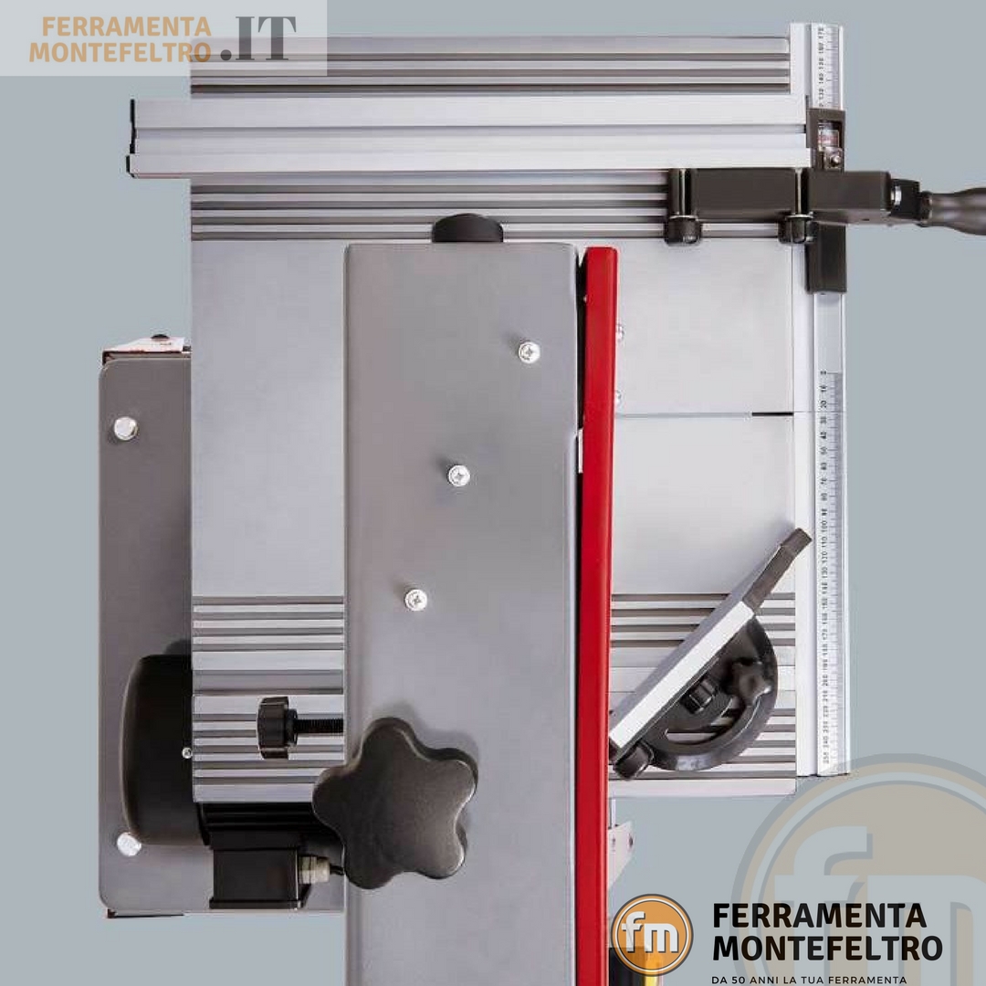 È presente anche un attacco per la funzione di aspirazione della polvere come anche uno spintore, indispensabile per garantire la sicurezza del lavoro.