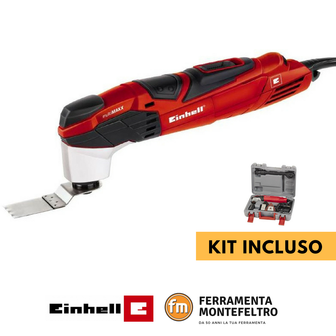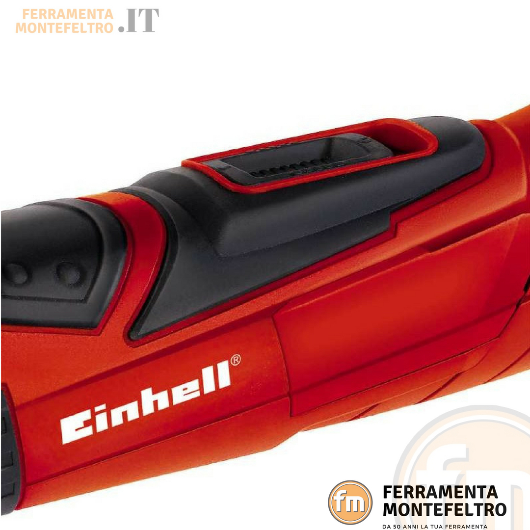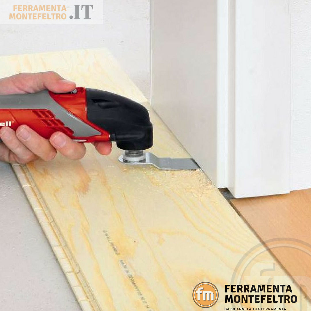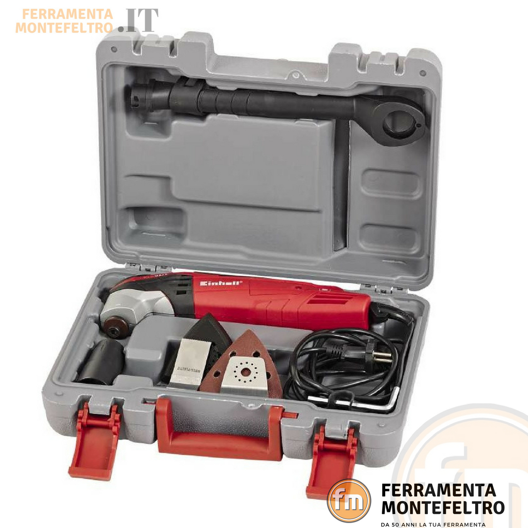 Il dispositivo multifunzione Einhell TC-MG-220/1 E permette di eseguire varie operazioni con un unico attrezzo. Che si tratti di levigare, raschiare o segare, grazie all'ampia dotazione gli appassionati del fai-da-te più ambiziosi hanno la possibilità di eseguire moltissimi lavori. La sostituzione degli accessori è veloce e facile grazie all'attacco magnetizzato con vite universale. Il TC-MG 220/1 E è dotato di portautensili a 4 punte e funziona con un potente motore da 220 Watt. L'elettronica veloce permette anche di adattare l'esecuzione dei lavori al materiale e al tipo di lavoro richiesto. L'impugnatura ergonomica antiscivolo garantisce sicurezza e rende più piacevole il lavoro grazie alla presa salda. Nella dotazione di consegna sono inclusi anche un platorello triangolare, 6 carta abrasiva (3*P60/3*P120), un raschietto e lama per sega da legno e plastica, un pratico aspiratore della polvere e chiave a brugola.