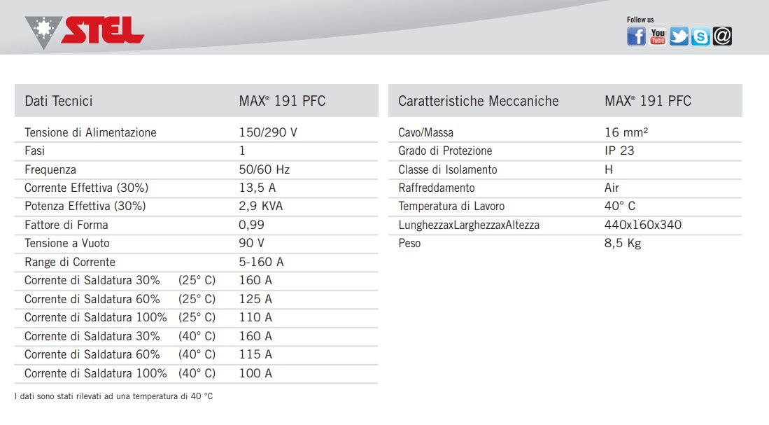 II Generatore MAX 191 PFC e’ in grado di saldare l’elettrodo da 4mm sotto il fusibile da 16 AMP.