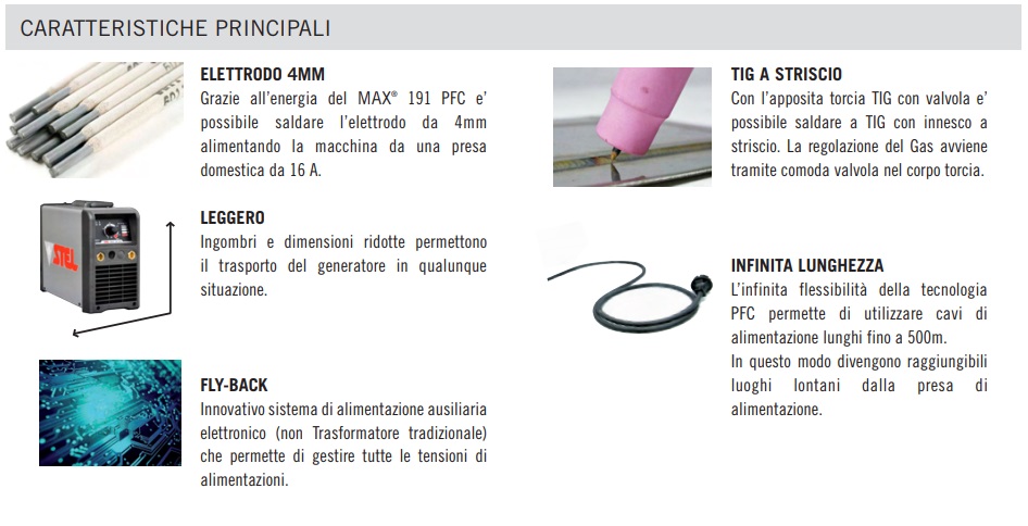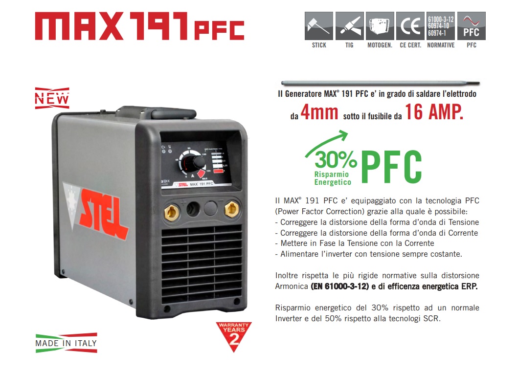 Il MAX 191 PFC e’ equipaggiato con la tecnologia PFC (Power Factor Correction) grazie alla quale è possibile:
