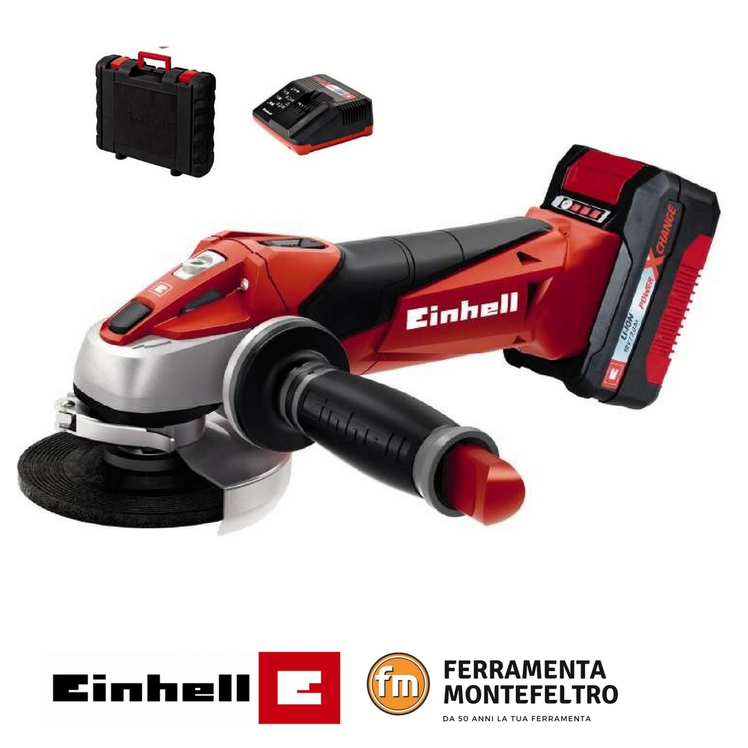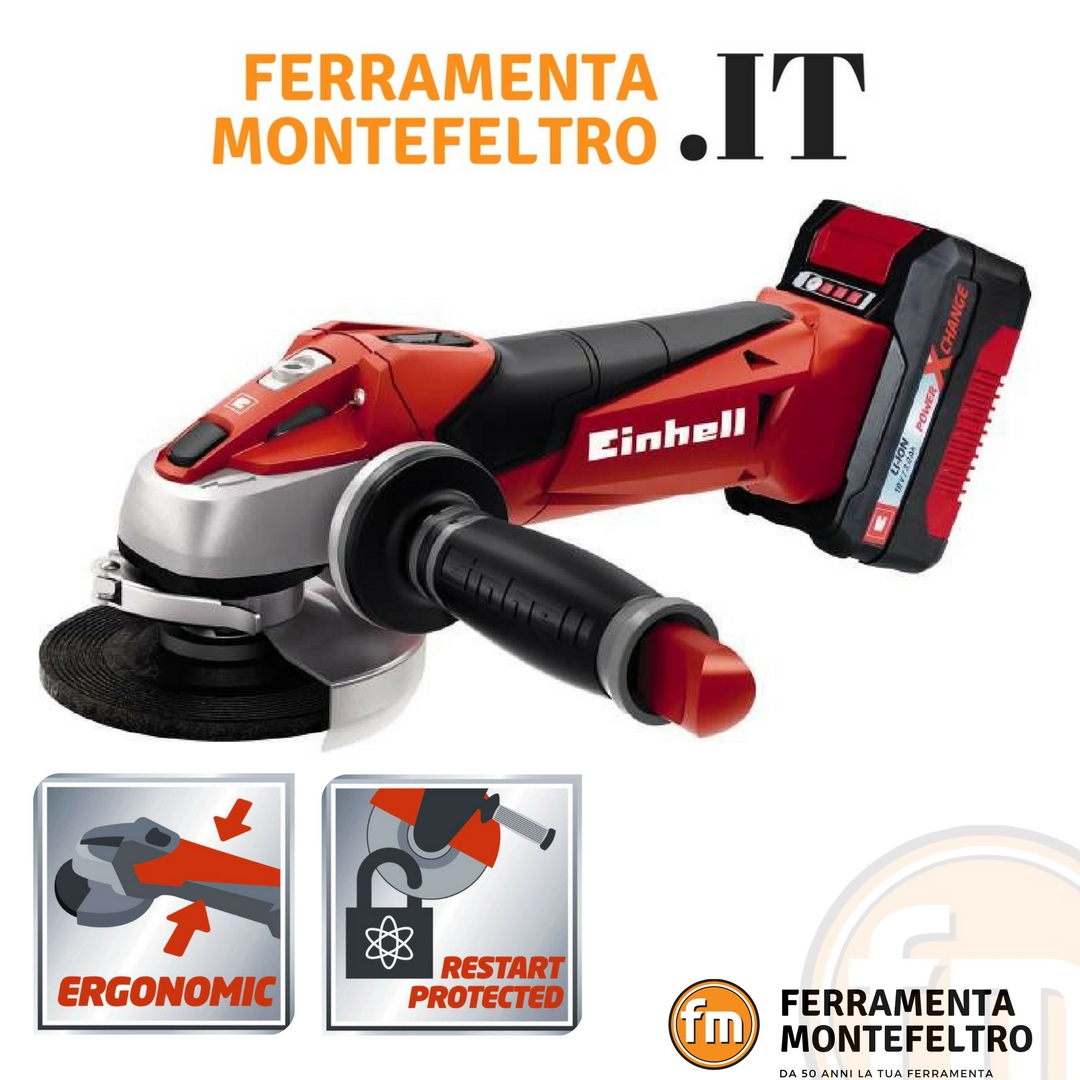 La smerigliatrice angolare a batteria TE-AG 18 Li Kit è la più leggera della sua categoria ed è un aiutante irrinunciabile per svolgere lavori di smerigliatura e separazione. Grazie alla robusta scatola porta ingranaggi in alluminio e al disaccoppiamento di motore e trasmissione, il funzionamento è estremamente silenzioso. La funzione Soft Start e la protezione di sicurezza contro l'avvio accidentale rendono la smerigliatrice angolare sicura e confortevole. La struttura snella e compatta con impugnatura ergonomica antiscivolo e la flessibile impugnatura supplementare montabile in tre posizioni consentono un grande comfort d’uso dell’apparecchio. Il condotto dell'aria modificato garantisce un raffreddamento ottimale dell’apparecchio e protegge gli ingranaggi durante il lavoro. La protezione del disco può essere adeguata in un instante a qualsiasi lavoro da svolgere. La protezione da sovraccarico assicura inoltre una maggiore sicurezza e durevolezza. Grazie alla batteria Power X-Change a 3,0 Ah, leggera e potente, la presa sulla smerigliatrice angolare senza cavo è sempre ottimale. L’innovativa tecnologia agli ioni di litio esclude pressoché completamente il rischio di autoscarica delle batterie, mentre il livello di carica è sempre consultabile sul pratico indicatore. Con il caricabatteria rapido in dotazione la batteria 3,0 Ah viene ricaricata nel giro di 60 minuti. La smerigliatrice angolare viene fornita con una batteria agli ioni di litio da 3,0 Ah e un caricabatteria rapido, senza disco, completa di robusta valigetta per trasporto e stoccaggio. Per garantire la massima flessibilità possibile, l'apparecchio funziona con qualsiasi batteria della famiglia Power X-Change.