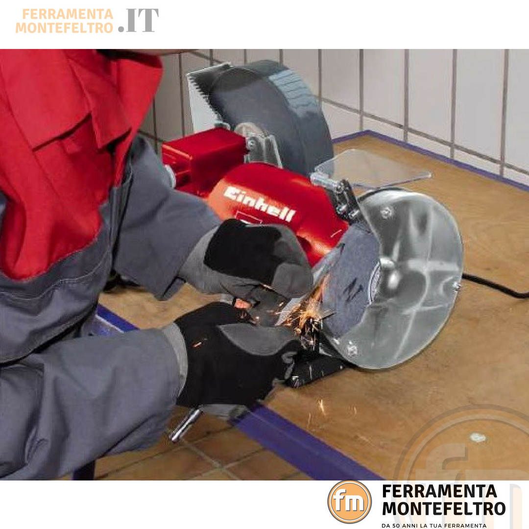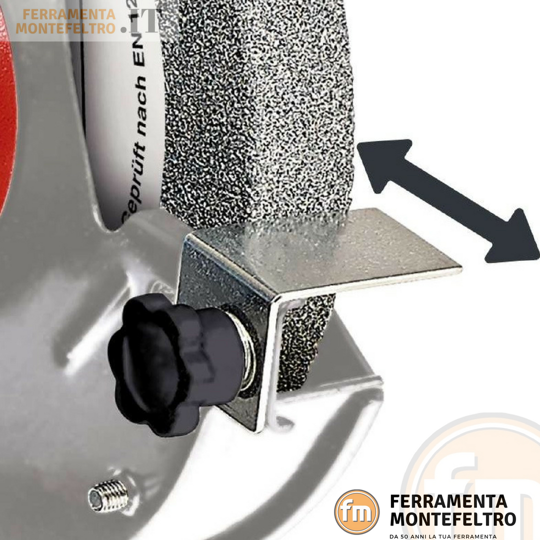 Grazie al supporto di lavoro regolabile può essere facilmente adattata allo spessore della mola a grana grossa.