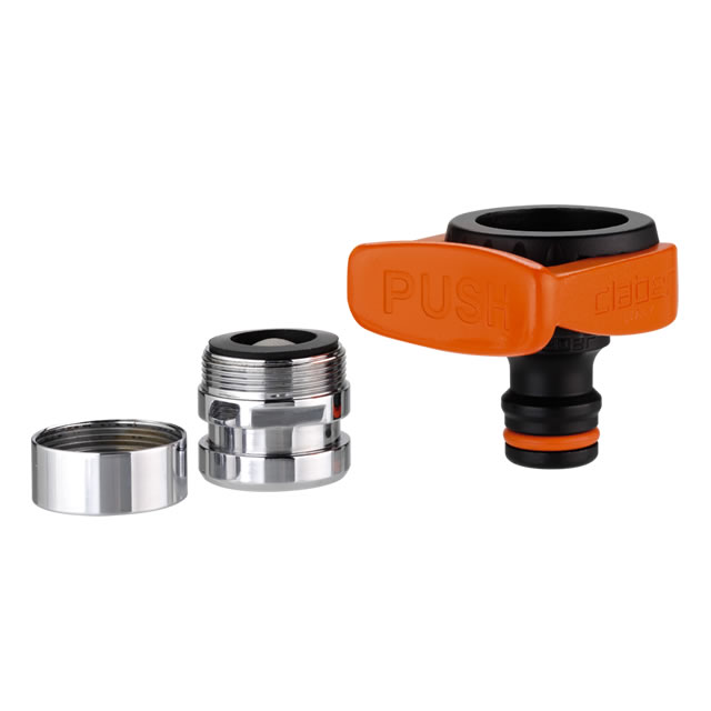 Contiene: presa a rubinetto 3/4" con riduzione 3/4"- 1/2" - raccordo da 3/4" - raccordo da 3/4" stop - lanciaspruzzo.