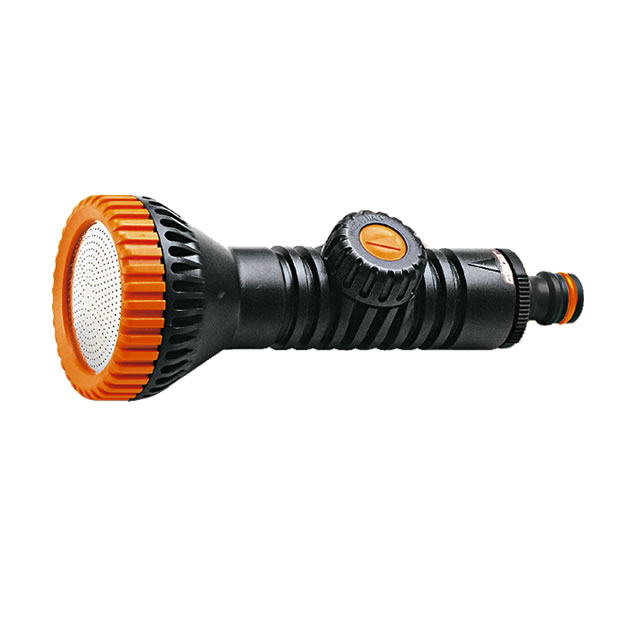 Lancia di nuovo disegno con doppia regolazione del flusso d`acqua e del getto: da tutto chiuso a tutto aperto (concentrato o nebulizzato). Cappuccio di regolazione con fermo antisvitamento.