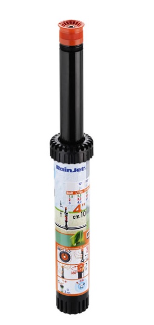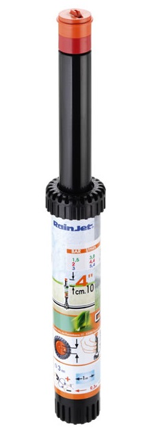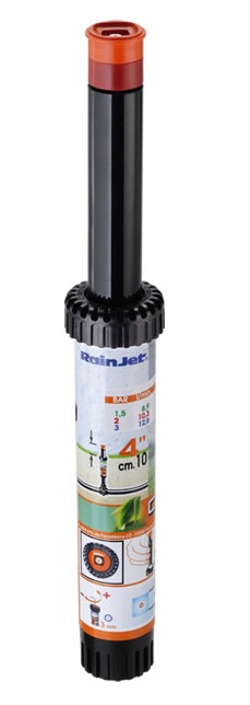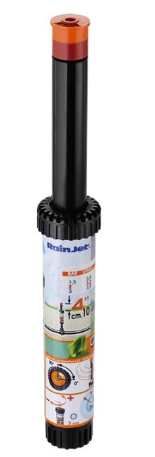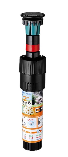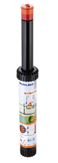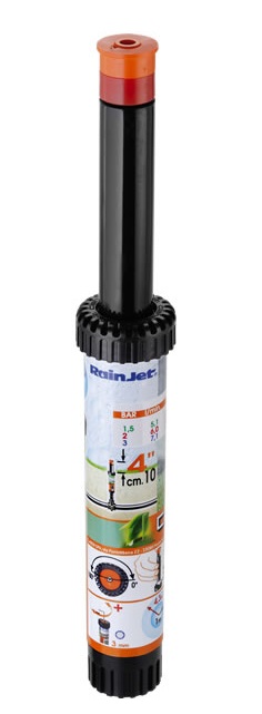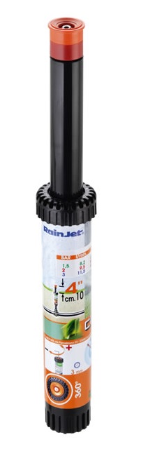 Irrigatore statico professionale con testina a 360°. L`ugello con profilo di speciale disegno consente una precipitazione dell`acqua uniforme e bilanciata. Vite di regolazione della gittata in acciaio inox.