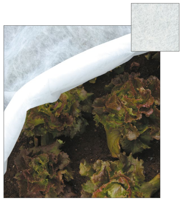 Tessuto non tessuto in fibra di polipropilene, leggero, permeabile all´acqua, all´aria e alla luce. Protegge dal freddo, vento, insetti e volatili. 17 gr/m².