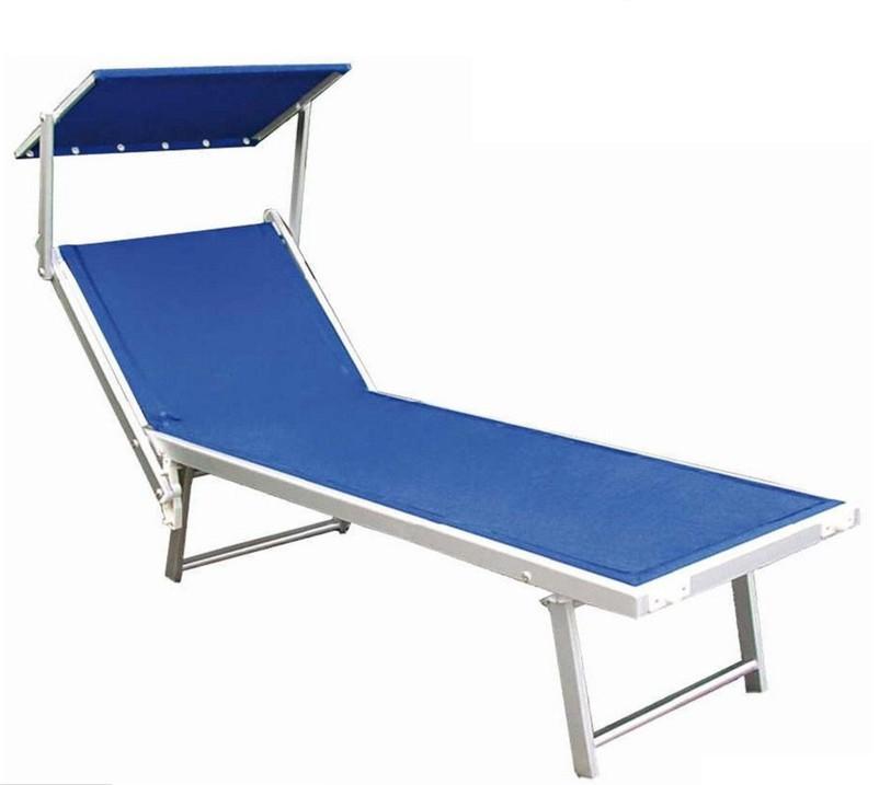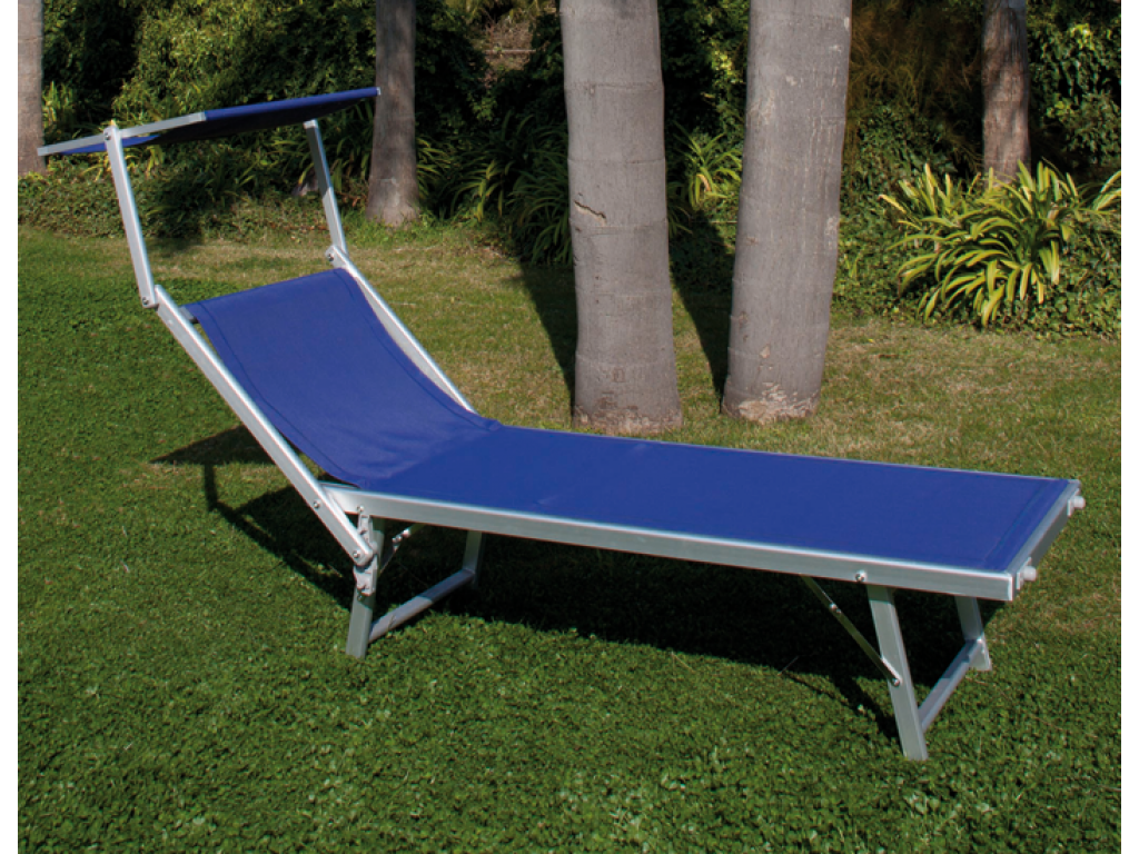 Caratteristiche tecniche Lettino con parasole Lettino con parasole, disponibile in più colori. Tubolare in alluminio 43x42/42x25 mm - telo in textilene colore bianco - dimensione 180x60x38/76h cm