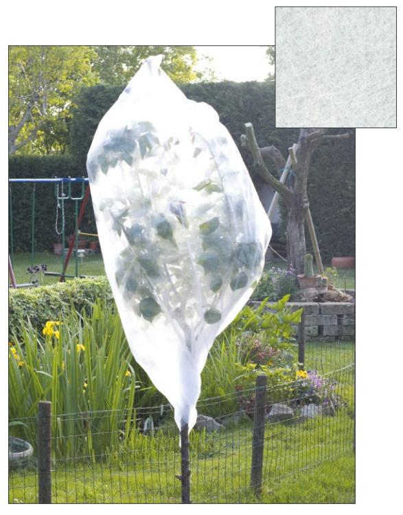 Cappucci in tessuto non tessuto in polipropilene, per la protezione di piante e arbusti di colore bianco, leggero, permeabile all´acqua, all´aria e alla luce, protegge piante e piccoli arbusti dal freddo, vento e dagli sbalzi climatici. 17 gr/m². Colore bianco