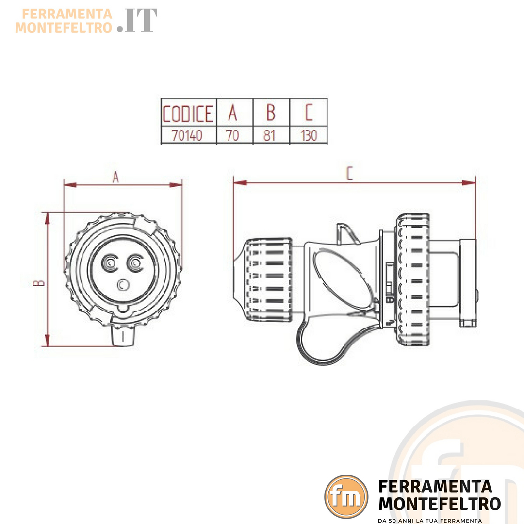 Spina mobile cablaggio rapido 2P+T 16A 200-250V 6h IP67