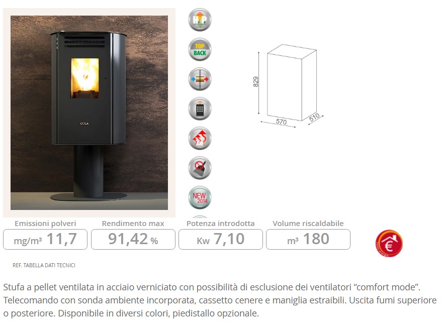 Caratteristiche tecniche Stufa a pellet VISION by Anselmo Cola
