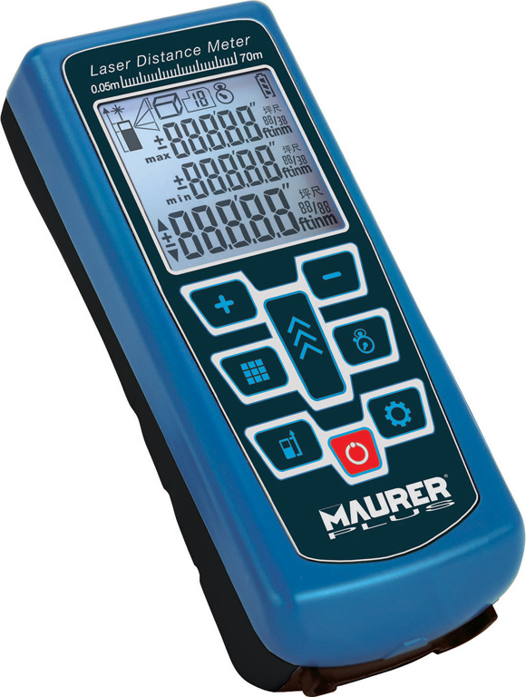 Misuratore laser "MAURER PLUS" per interni - portata 0,05-70 m - precisione +/- 1,5 mm - unità minima visualizzata: mm/pollici/piedi - classe laser: 2 - tipo di laser: 650 nm
