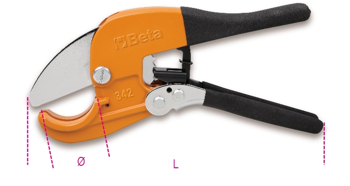 Caratteristiche tecniche Cesoia a cricchetto 342 Cesoia per tubi in materiale plastico Tabella referenze Ømm - " Lmm 0÷421"5/8 200
