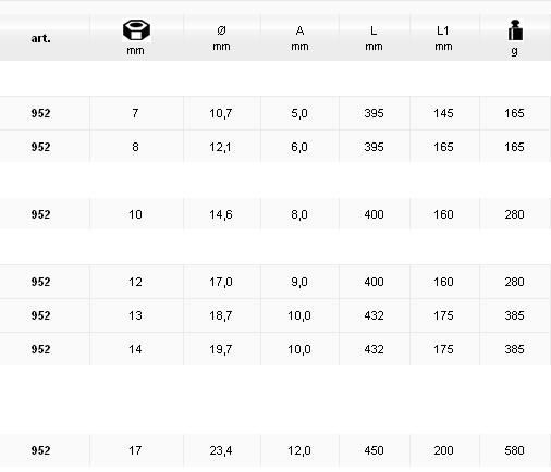 Il set è composto da 7 chiavi a T con bussola esagonale snodatadelle relative misure: