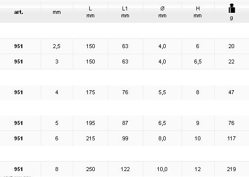La chiave 951 è Concepita per sviluppare coppie elevate.