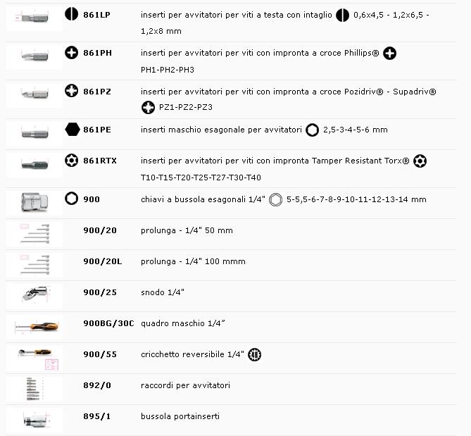 Caratteristiche tecniche Beta Mini 900/C39 - Assortimento chiavi, inserti e accessori