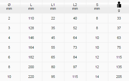 cacciaspina cromati nelle misure: Ø2, Ø3, Ø4, Ø5, Ø6, Ø8, Ø10 mm